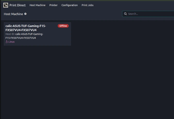 Odoo modul prikazuje sva registrirana host računala s trenutnim statusom (online/offline) i popisom spojenih printera.